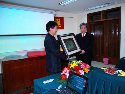 学生代表谭满清研究员向陈院士赠送礼品